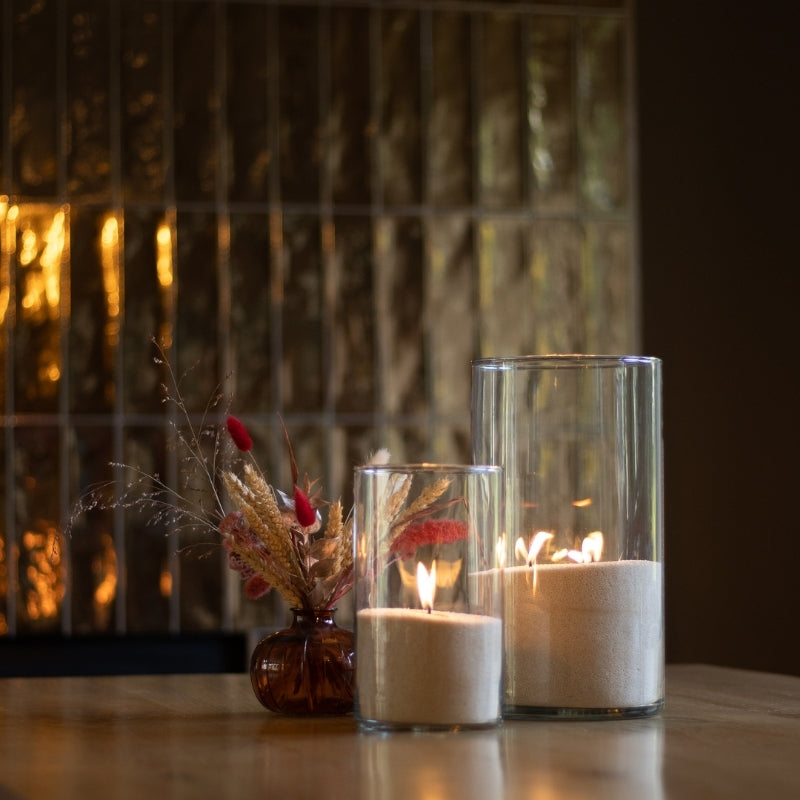 Voor de beste ervaring raden we aan om een pot, vaas of schaal te gebruiken met een minimale diameter van 10 cm en een diepte van 10 cm. Dit zorgt ervoor dat de SandWax kaars optimaal brandt, de lont stevig blijft staan en je veilig kunt genieten van een schone en gelijkmatige verbranding.