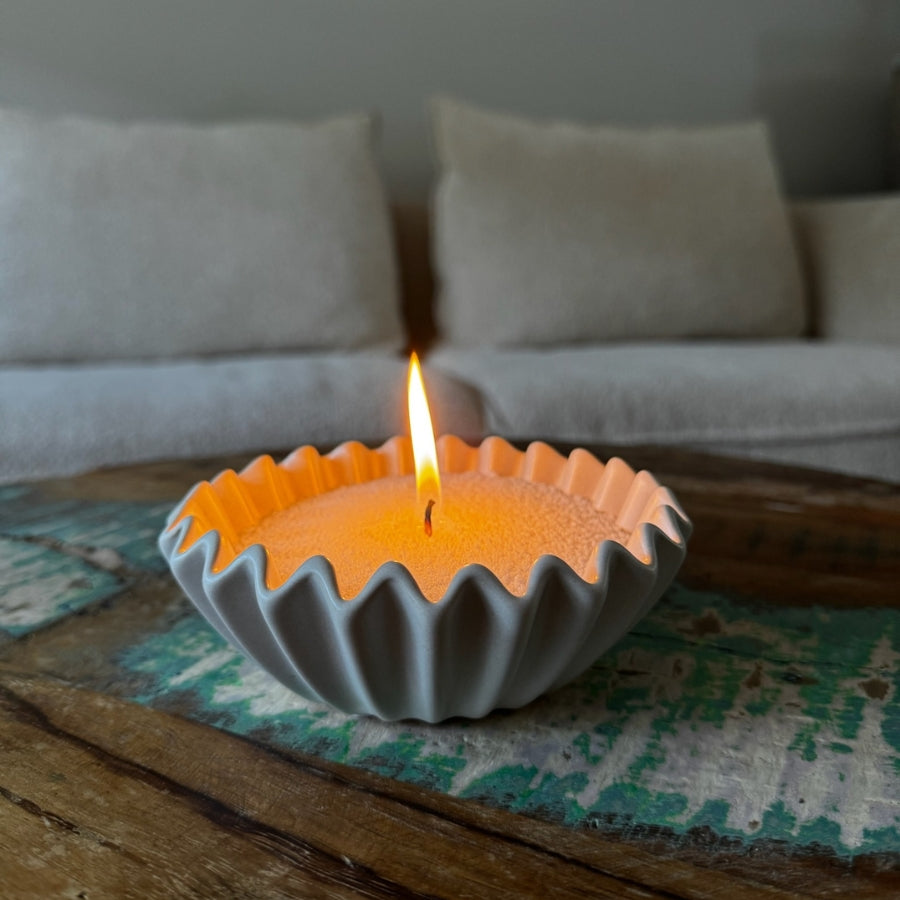 De schaal is gemaakt van stevig, mat keramiek in een subtiele witte tint. De kaarsenschaal heeft een diameter van 15 cm en is 6 cm hoog. De golvende rand zorgt voor een zachte, organische uitstraling. Stevig, hittebestendig en perfect om steeds opnieuw te vullen met SandWax kaarsenzand.