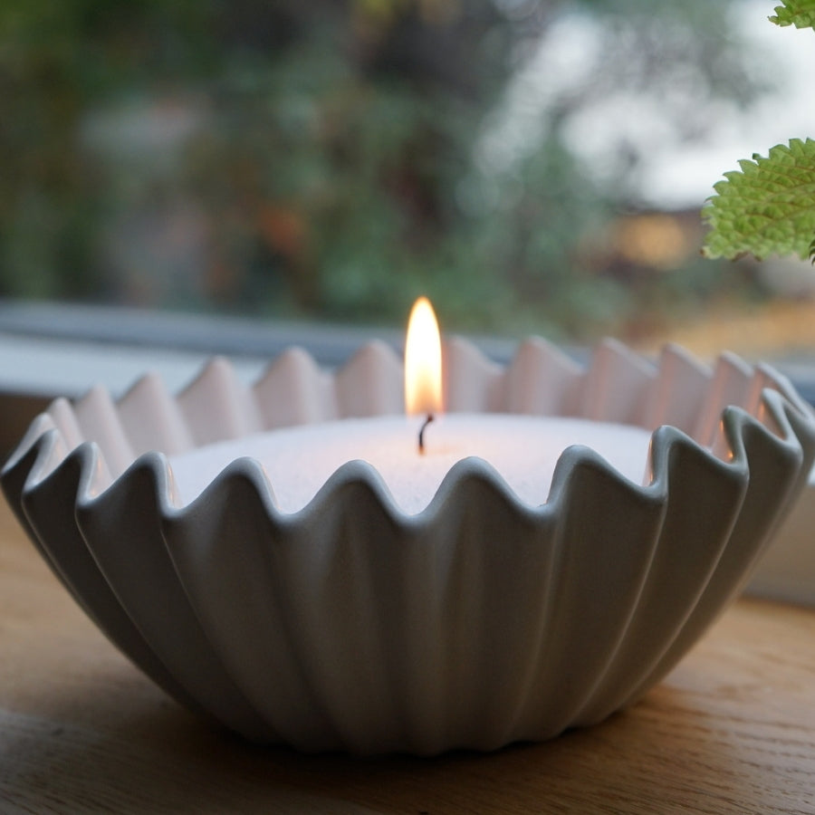 Een klein sfeermoment, helemaal in jouw stijl. Deze kleine keramieken kaarsenschaal is perfect voor wie een subtiele, gezellige en warme lichtbron zoekt. Gemaakt van mat keramiek in een zachte witte tint. Met een lichte golfvorm in de rand die zorgt voor een rustige en organische uitstraling. Compact van formaat, maar groots in sfeer.