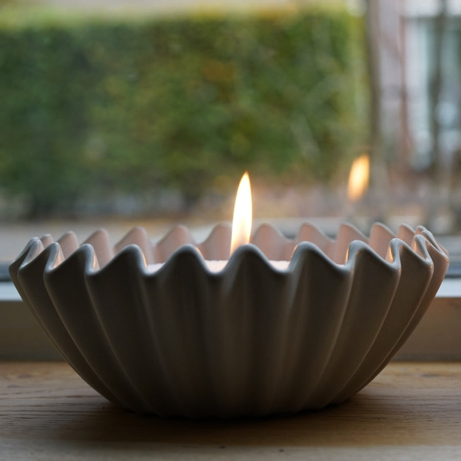 Een schaal die niet alleen een kaars draagt. Maar ook een moment van ademruimte. Zacht licht. Rustige kleur. Een warm gebaar. Voor jezelf of als cadeau om te geven.